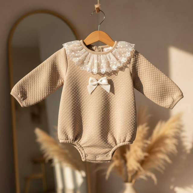 Baby Girls Beige Pex Romper