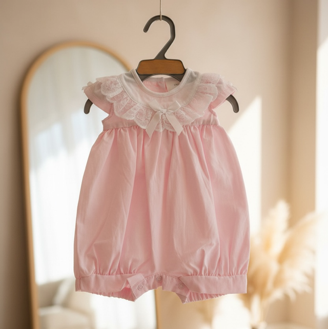 Baby Girls Pink Lace Romper With Bow
