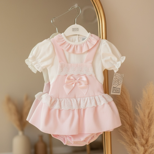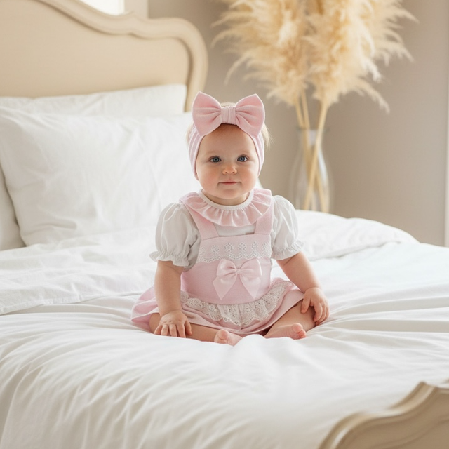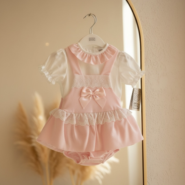 Short Sleeve White Top, Pink Bow Dungaree & Pants