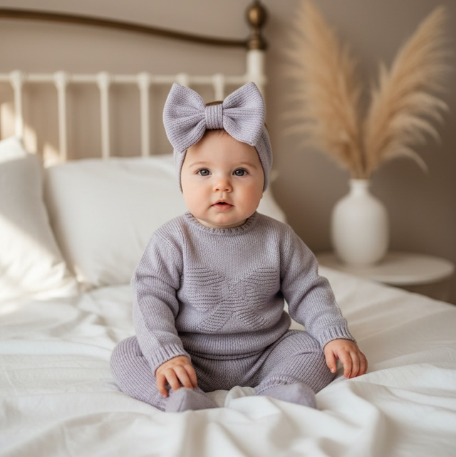 Baby Girls Purple Bow 4pc Set