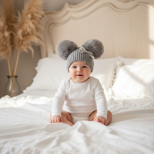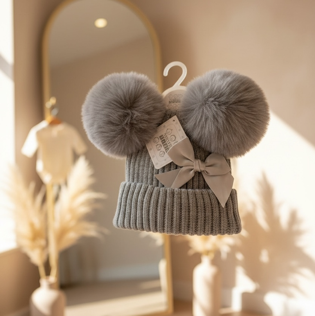 Baby’s Grey Bow PomPom Hat