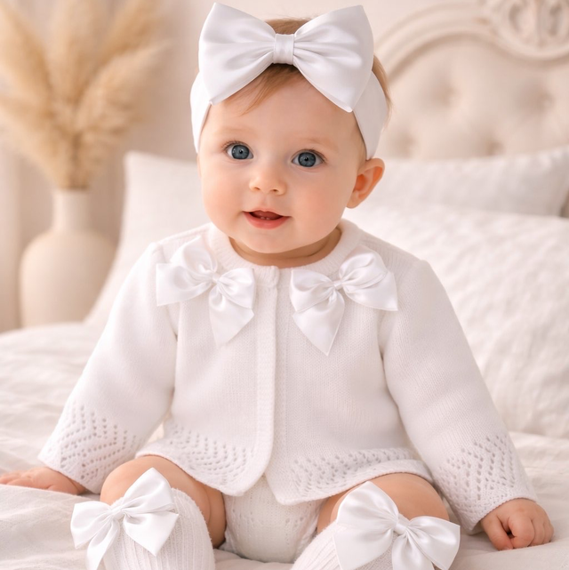 Baby’s White Double Bow Cardigan