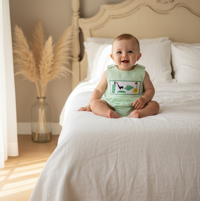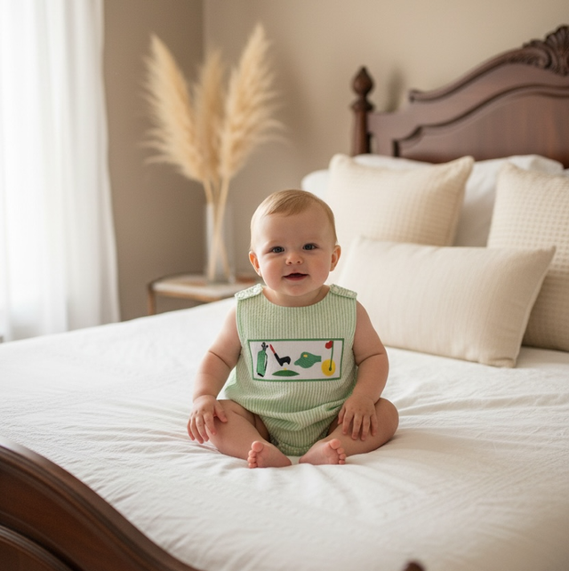 Boys Green Golf Romper